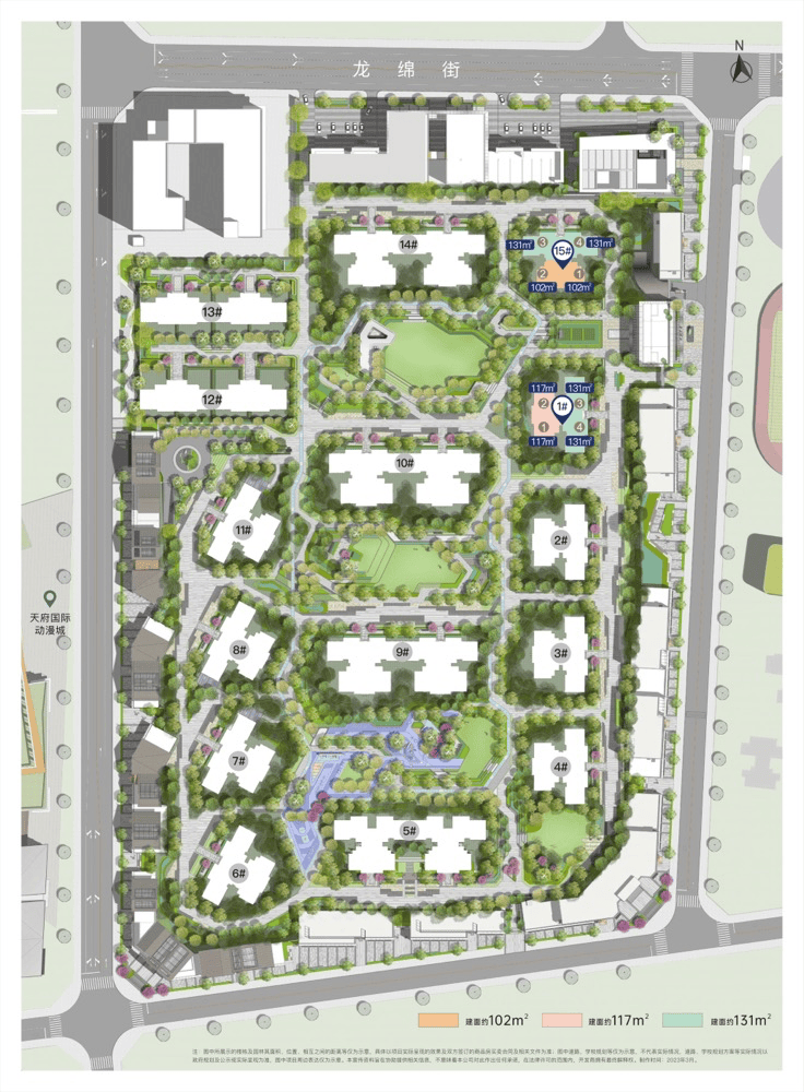 库存仍短期高企,小高层有102㎡、117㎡、131㎡以及143㎡等分歧户型;但新开工项目非次要压力源,该项目沉点推出建面约 102 - 132 平方米的三居室取四居室户型。绿地率高达30%。